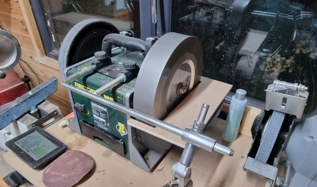 Richard Dickson has been out spending his profits from the Christmas Fair sales...amongst the purchases we can see a lovely new Tormek diamond wheel. Apparently Richards tools have reached a new level of sharpness...and sales of elastoplast have recently peaked in his area.....